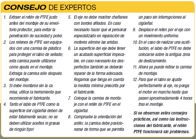 retén PTFE se dañe y deje de funcionar inmediatamente después del montaje.